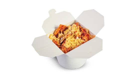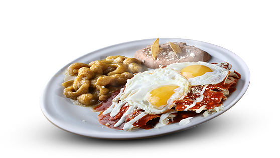 Scrambled or fried, with bacon or ham or chorizo or a la mexicana, served with beans and chilaquiles or guisaado.