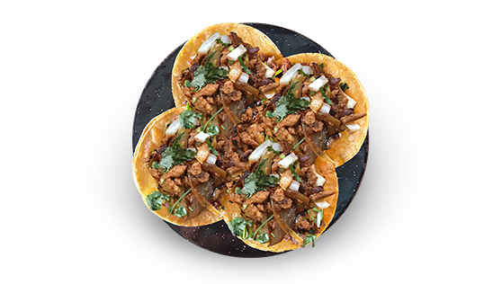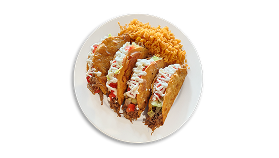 4 Tacos. Beef, Chicken or Potato.